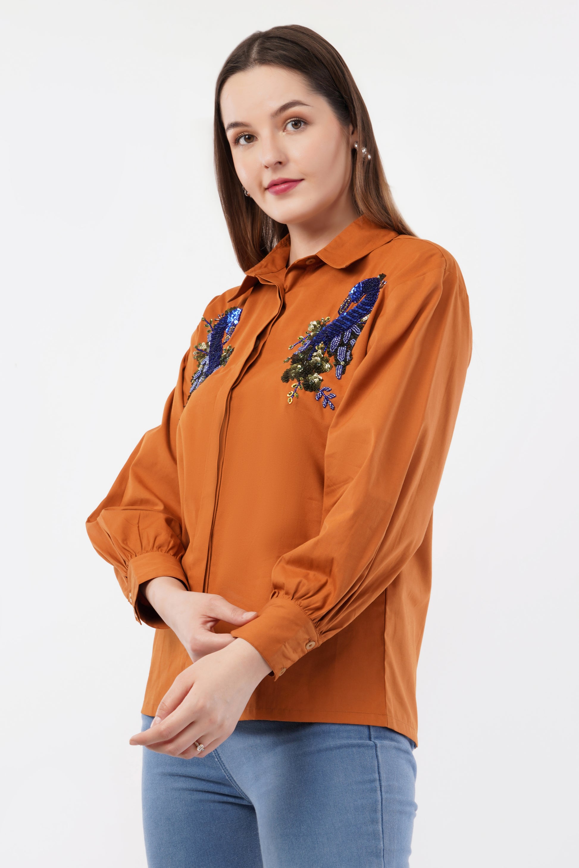 IVORY ORANGE PEACOCK SHIRT