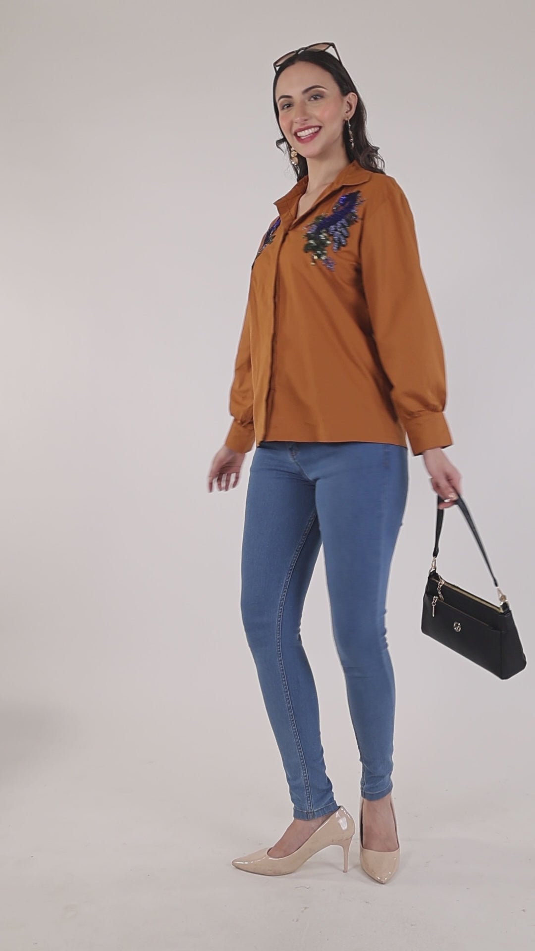 Color: Ivory with orange and Blue peacock Hand embroidery